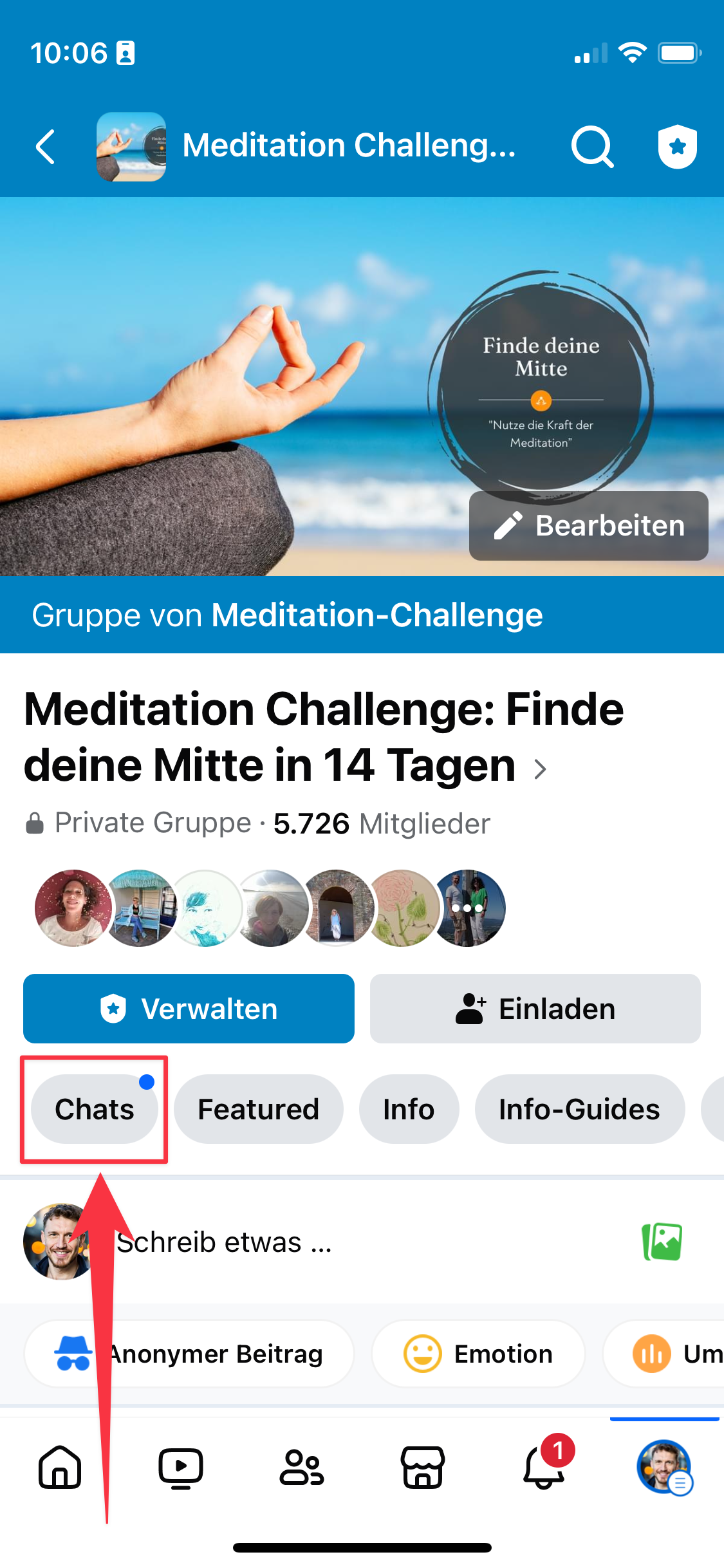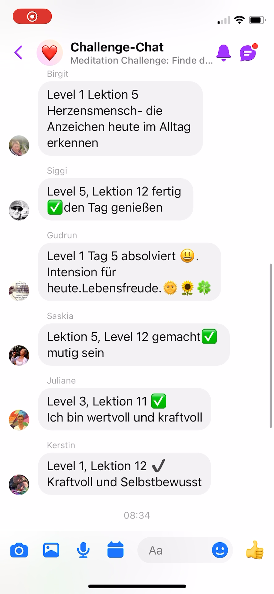 Der Challenge-Chat ist der Chat der großen Facebookgruppe: Meditation-Challenge: Finde deine Mitte in 14 Tagen
