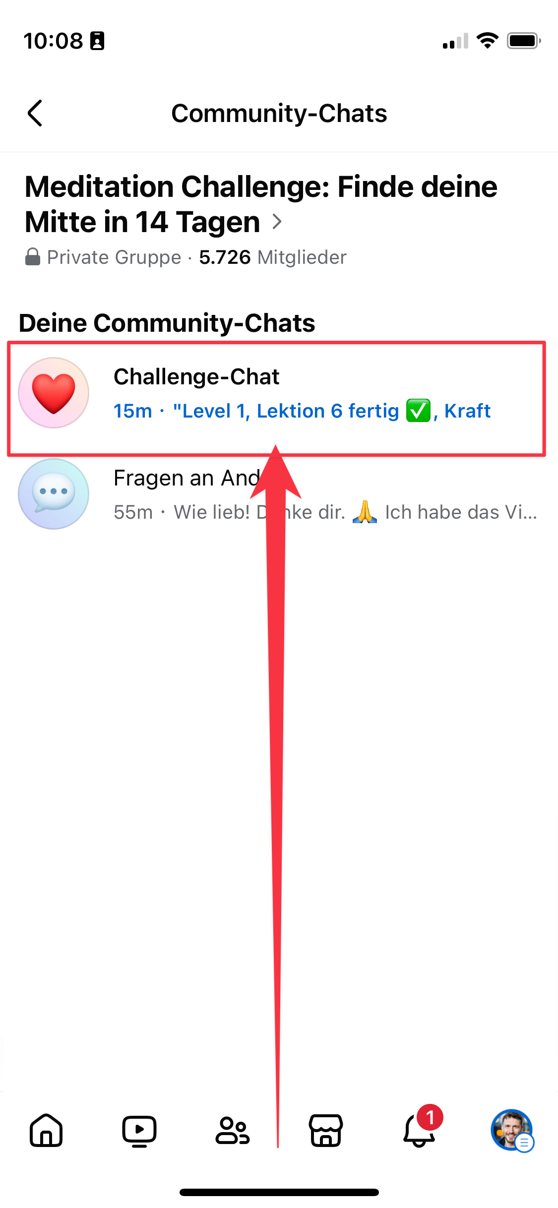 Im Folgenden möchte ich kurz beschreiben, wie du das am besten tun kannst. Das Teilen deines Fortschritts sollte nämlich im Challenge-Chat stattfinden, nicht in der Facebookgruppe an sich.