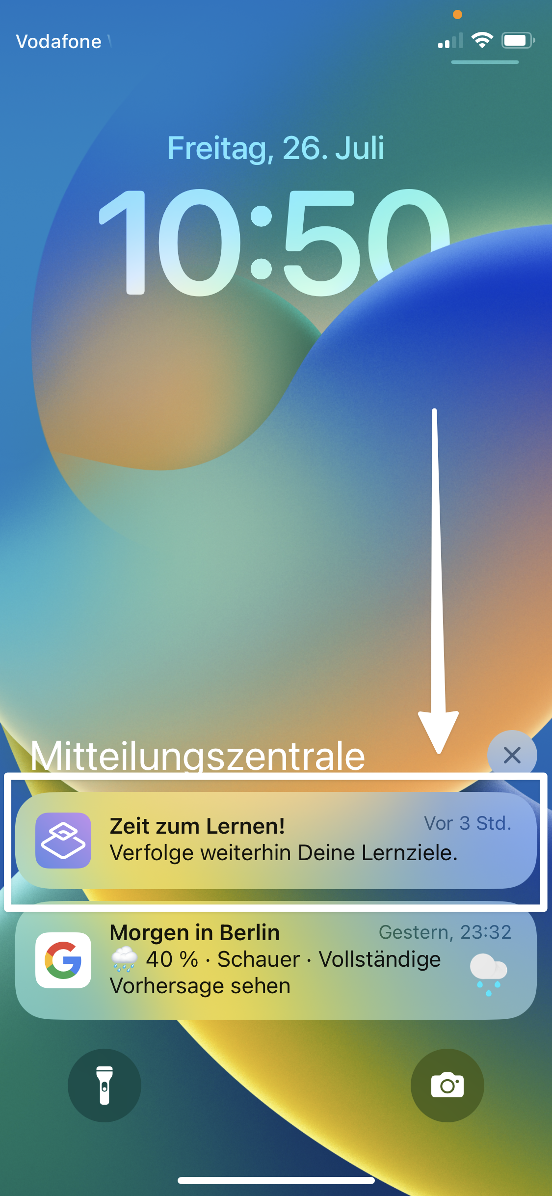 Damit du in deiner Tagesstart-Routine gleich mit der Lektion loslegen kannst, stellen wir hier die Erinnerungen ein. Du brauchst dann nur noch auf diese Erinnerung / Reminder zu klicken und du bist direkt in die aktuelle Lektion des Tages.