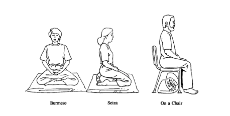 - DAS SITZEN: Setze dich entspannt auf einen Stuhl, eine Bank oder den Boden, so wie unten im Bild abgebildet.